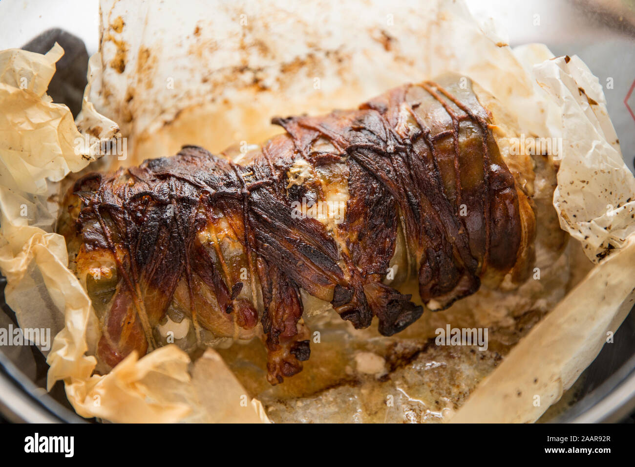 Una Sezione Di Grongo Conger Conger Che E Stata Riempita Con Carne Macinata Di Maiale Con Ingredienti Inclusi Macis La Salvia E Il Timo E Stato A Capriate Wit Foto Stock